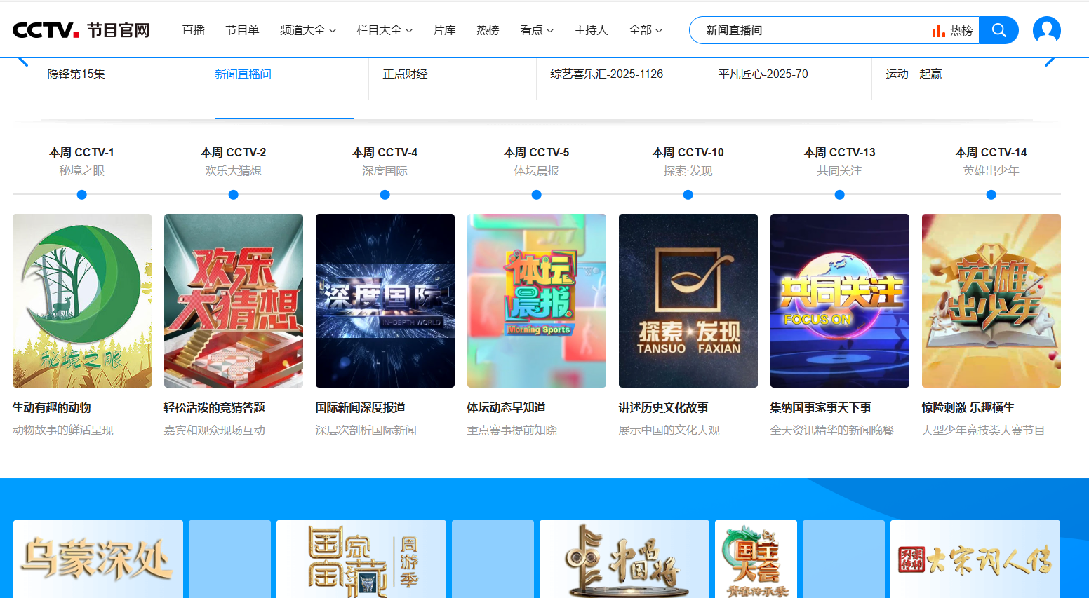 央视直播CCTV节目官网:https://tv.cctv.com/
